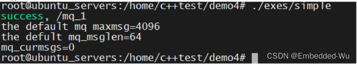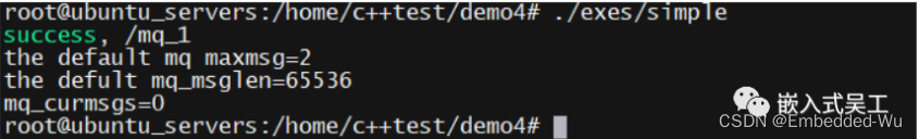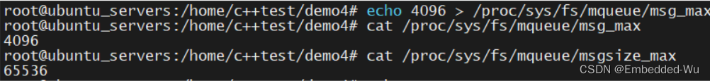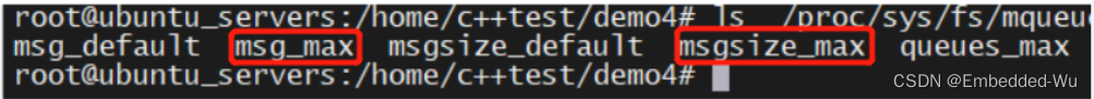 从输出可以看出,默认情况下,消息队列的最大消息数为10,单条消息的最大字节数为8192字节。