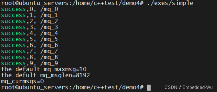 看,现在能创建10个消息队列,每个消息队列最大有10个消息 ,每个消息长度为8192字节。