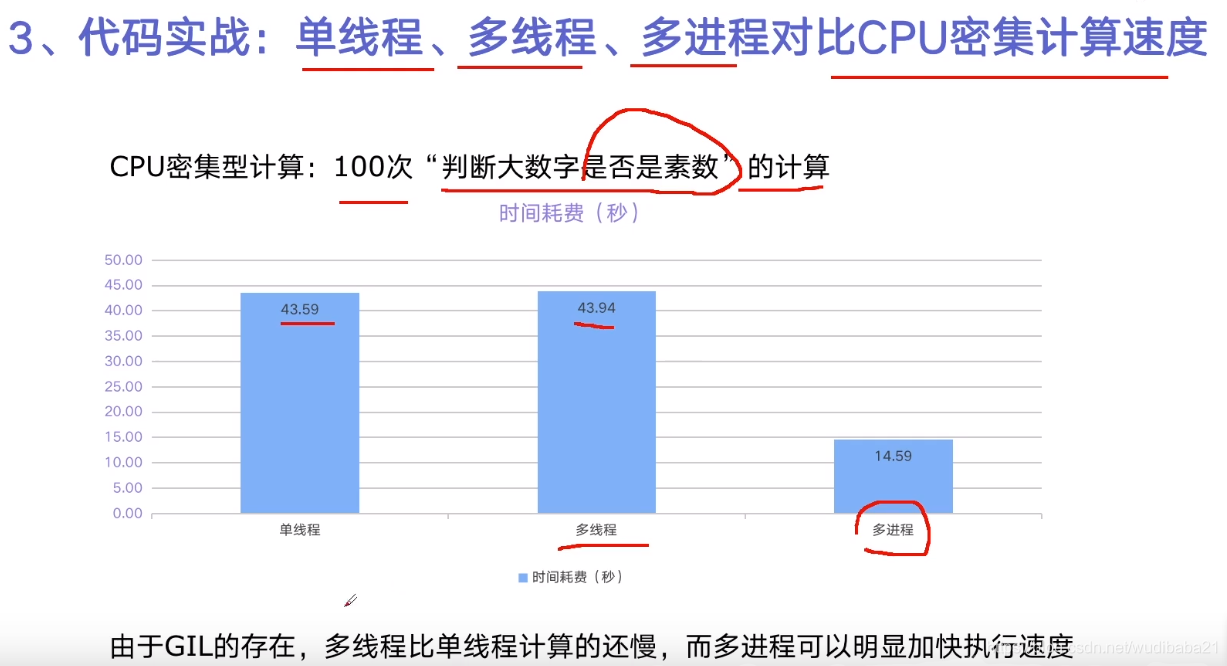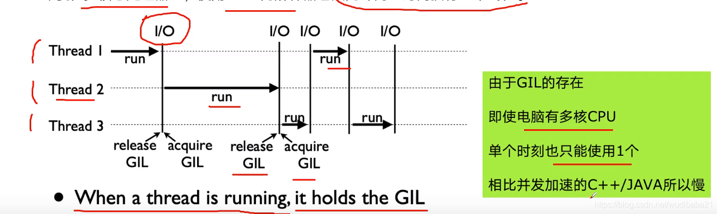 即使在多核心处理器上,使用GIL的解释器也只能允许同一时间执行一个线程