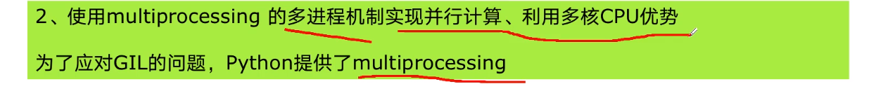 - 多进程:multiprocessing,利用多核CPU的能力,真正的并行执行任务。