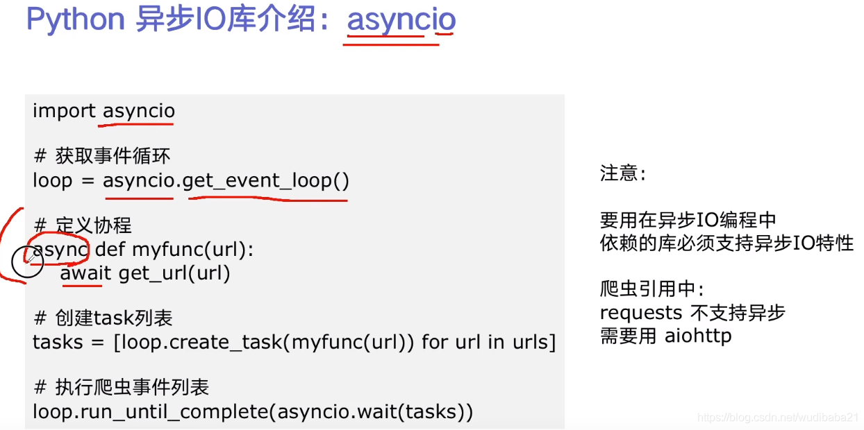 - 异步IO:asyncio,在单线程利用CPU和IO同时执行的原理,实现函数异步执行