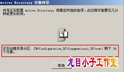 建议:在安装过程中不要取消安装过程,否则可能造成系统无法启动。如果确实需要取消安装,可以在安装成功后执行活动目录的删除过程。