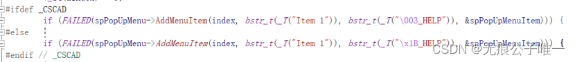 if (FAILED(spPopUpMenu->AddMenuItem(index, bstr_t(_T("Item 1")), bstr_t(_T("\x1B_HELP")), &spPopUpMenuItem))) {