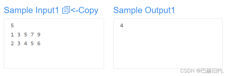 在一行中输出两个输入序列的并集序列的中位数。
