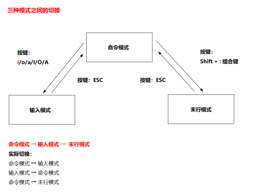 三种工作模式1.命令模式:用户输入vim时当作指令处理,一般通过vim打开文件进入的时候,就处于这个模式