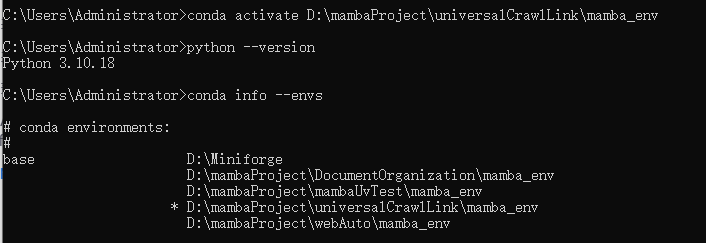 激活后再次查看现有的mamba环境,激活后的环境在前面会带*