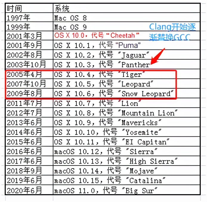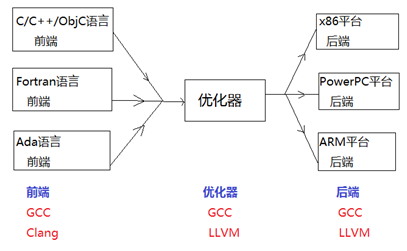 GCC编译器从20世纪90年代就已经开发出来了,特别作为 Linux的当家编译器,GCC开源使得其广为流传,包括Apple在内,最开始也是使用GCC编译器,因为当时的Apple并没有自己的编译器,因此早期的XCODE使用GCC编译器编译Object-C,由于Object-C不断地引入新的特性,Apple公司不停与GCC组织协商改进GCC,可能当时的Apple还未有什么名气,GCC不太配合修改,这让Apple公司很是恼火。