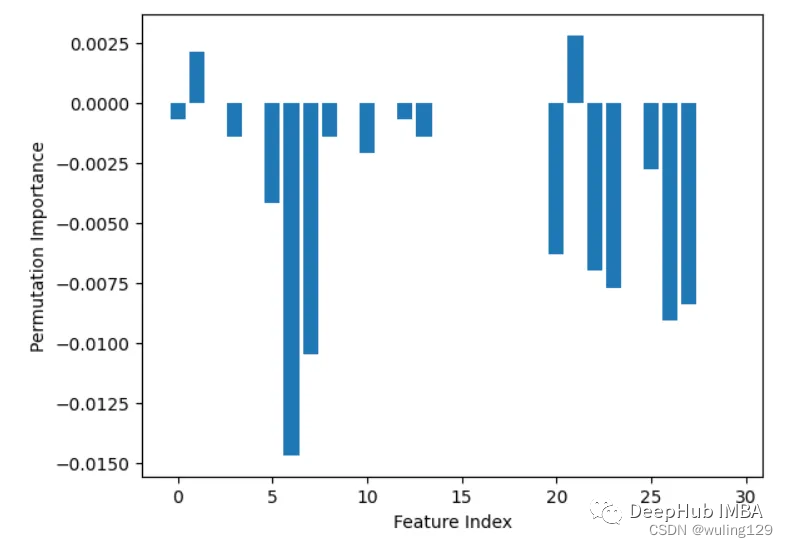 该方法会随机排列每个特征的值,然后监控模型性能下降的程度。如果获得了更大的下降意味着特征更重要