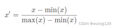 其中,min(x) 和 max(x) 分别是数据集 中的最小值和最大值。经过这个公式处理后, 的值将位于0和1之间。