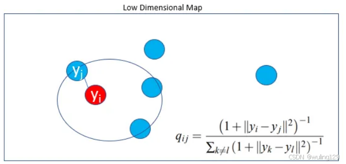 yᵢ 和 yⱼ 是高维数据点 xᵢ 和 xⱼ 的低维对应项。