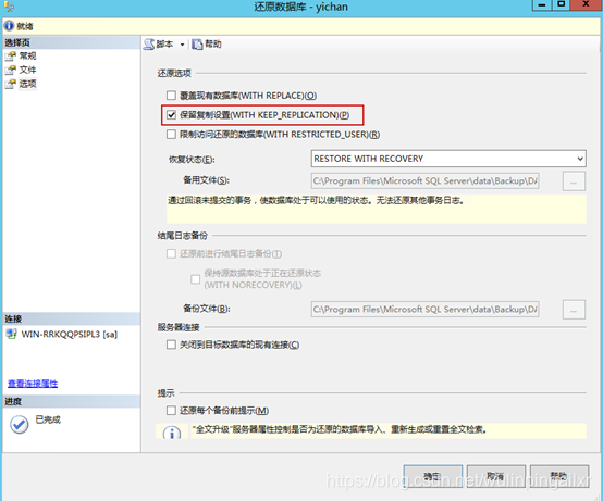 若在恢复时使用:KEEP_REPLICATION 选项恢复数据库,则表总数量存在,但是删除数据库时提示: