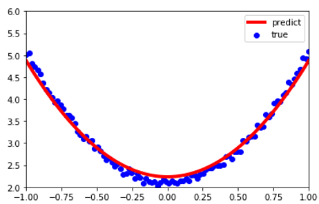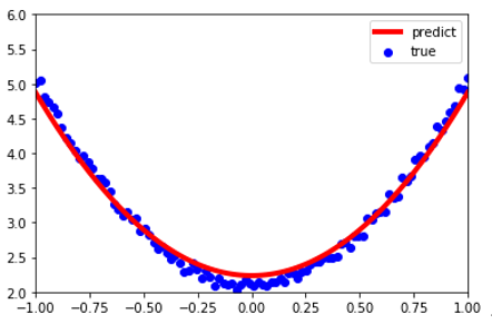 y_p=x.pow(2).mm(w).detach().numpy() + b.detach().numpy()