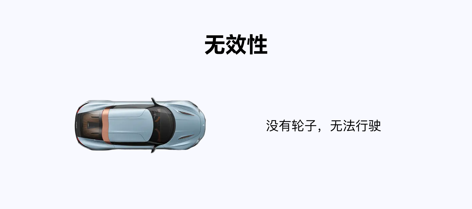 顾名思义,有效指的就是产品功能的有效性,产品是否能够为用户带来价值,是否能够帮助用户完成目标,如果不能帮助用户完成目标,那么就不存在产品有效性,就像我们买筷子是为了吃饭、买开瓶器是为开盖、买车是为了代步.....如果筷子只给我们一只,开瓶器无法开启瓶盖,车子没有轮子跑不起来,那这个产品就是残缺的最基础的可用性都未达到。