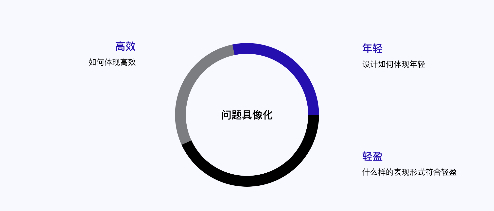 该阶段是已经开始要开始进行落地了,第一第二阶段是找到正确方向,而现在则是用正确的方法去做正确的事情,我们要把聚焦的问题具象化,构思我们能够想到的方案,比如设计前期探索定义的是年轻、轻盈,在该阶段我们就需要根据关键词去考虑如何进行设计,这个阶段是一个不断生产和推翻的流程,一直重复,直到找到能够落地的方案。