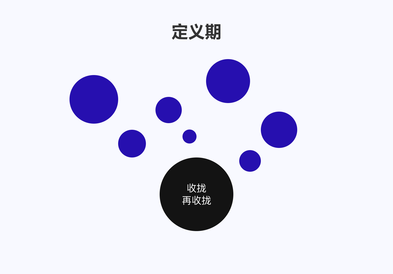 像前面说的,该阶段就是把发现期散发的想法往回收一收,毕竟那么多想法哪一个才是我们需要的,我们需要在这个阶段去筛选出来。