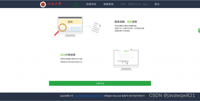 3、该系统的数据并不太多。可以使用测试帐号:test 密码:test 试卷:选择第一套试卷。