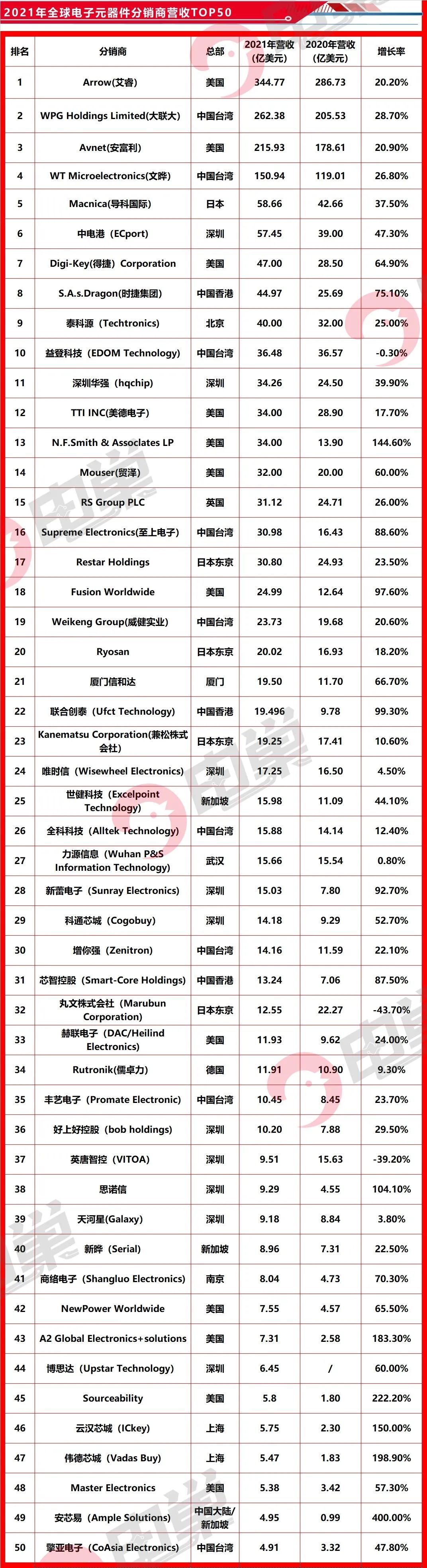 行业媒体《国际电子商情》与ESPNews 联合发布的2021年度全球电子元器件分销商营收全球TOP50排名数据中,中国企业(含港澳台)占28个,其中深圳占10个,在中国分销体系中,深圳占据半壁江山,具备一定的集散优势。