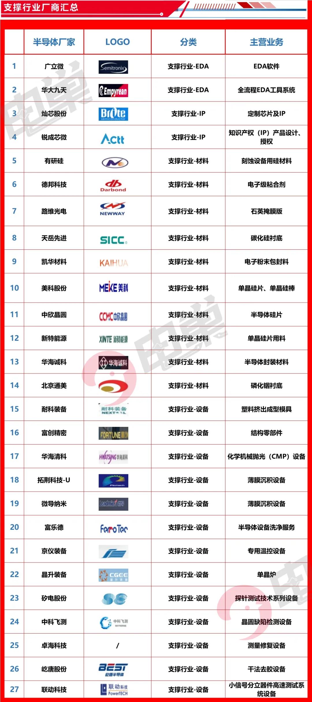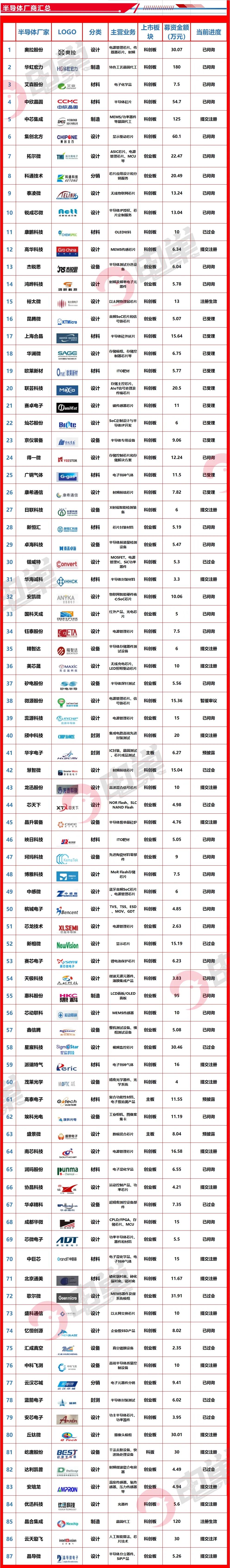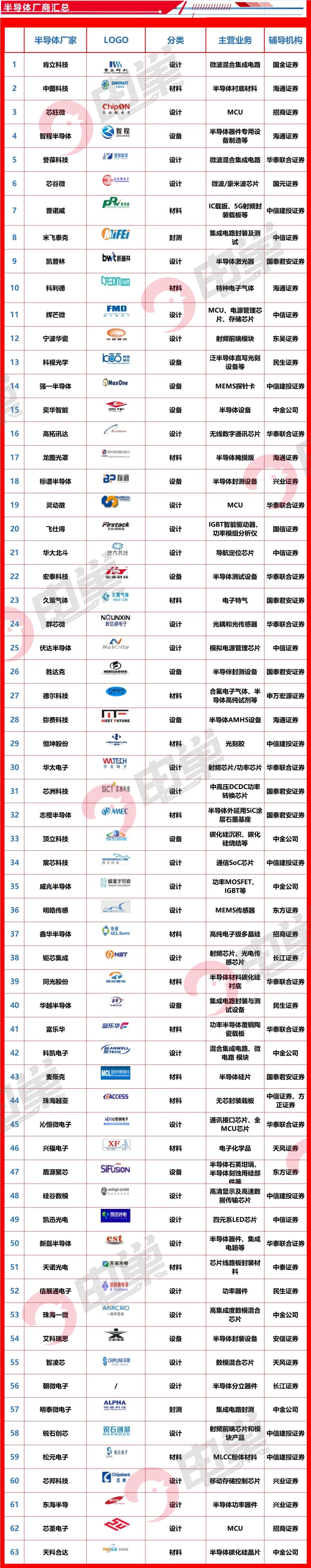 在上文中提及的150家半导体具体厂家如下:(排名不分先后)