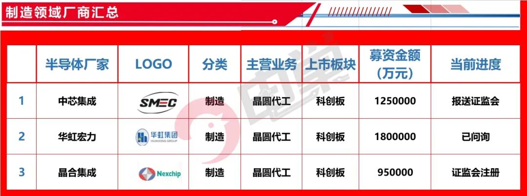 目前正在上市的企业有中芯集成、华虹宏力、晶合集成3家。