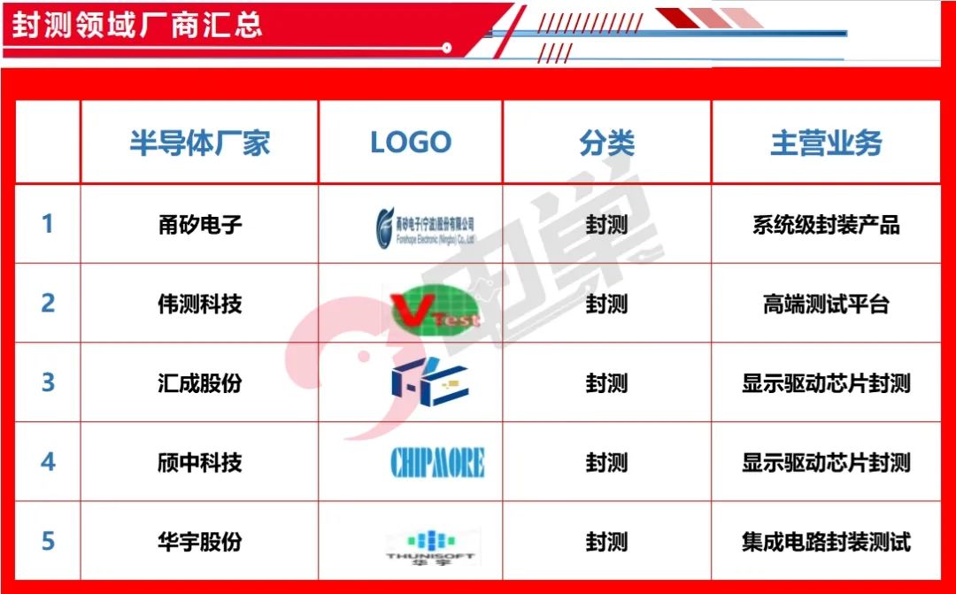 现有颀中科技、华宇股份、汇成股份、伟测科技、甬矽电子等企业也开始崭露头角。