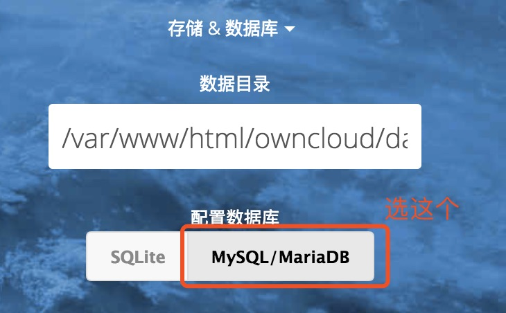 在初始化owncloud的页面中会让我们进行一些设置,比如用户、密码和数据库等。选数据库的时候千万要注意几点: