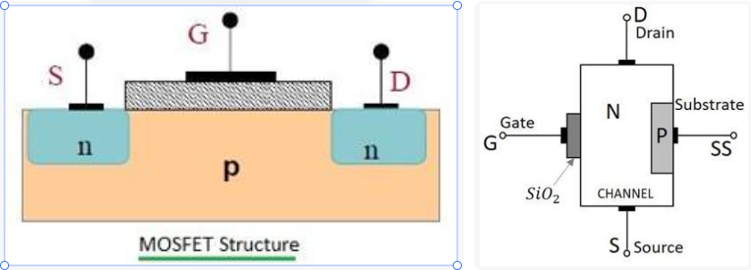 MOSFET 的工作原理,是通过给栅极加载不同的电压,控制不同的电流。