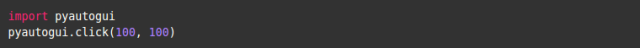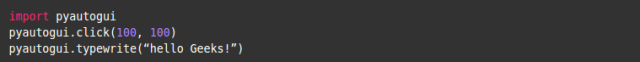 假设文本区域位于屏幕 (100, 100) 的坐标位置, 那么这段代码将点击文本区域, 激活它, 并键入 "hello Geeks!"