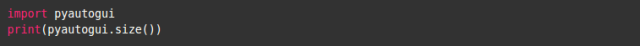 这段 Python 代码调用了 size() 函数, 以 (x, y) 的格式输出屏幕分辨率:
