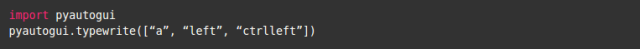 typewrite(): 用于自动键入字符串, 只需将要键入的字符串传递给函数作为参数即可