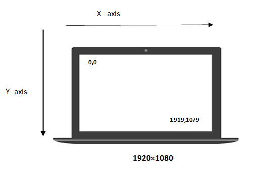 Python 通过屏幕的坐标系统对鼠标指针进行追踪与控制. 假设你的屏幕分辨率为 1920X1080, 那么屏幕的坐标系统看起来是这样的: