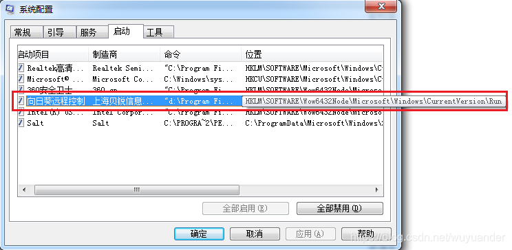 我通过msconfig命令打开“系统配置”-“启动”里查看这类软件的启动方式,发现,这些程序的都是通过在注册里面的启动项种添加命令完成的。