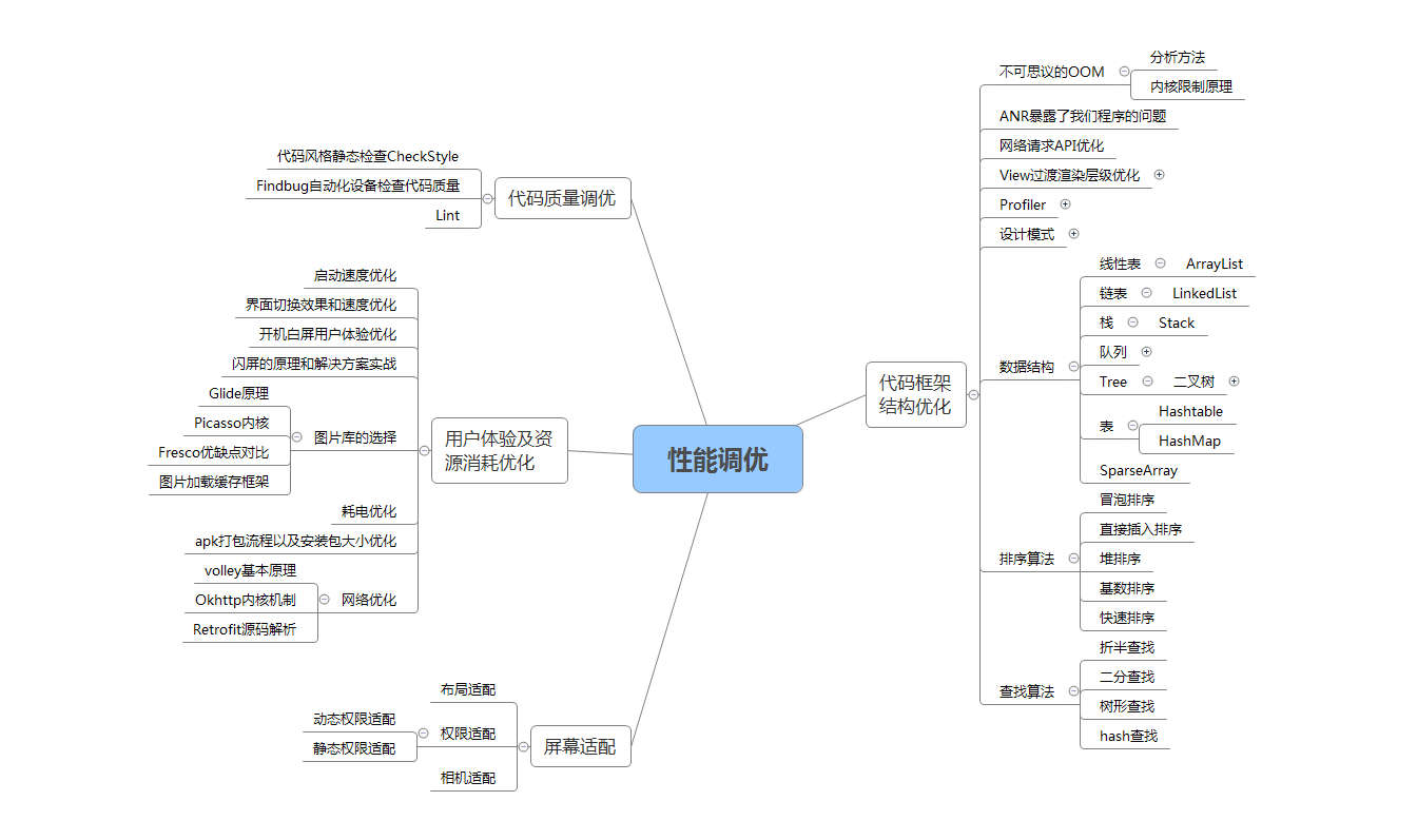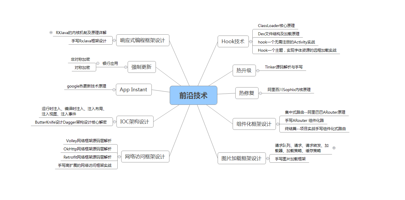 我搜集整理过这几年阿里,以及腾讯,字节跳动,华为,小米等公司的面试题,把面试的要求和技术点梳理成一份大而全的“ Android架构师”面试 Xmind(实际上比预期多花了不少精力),包含知识脉络 + 分支细节。