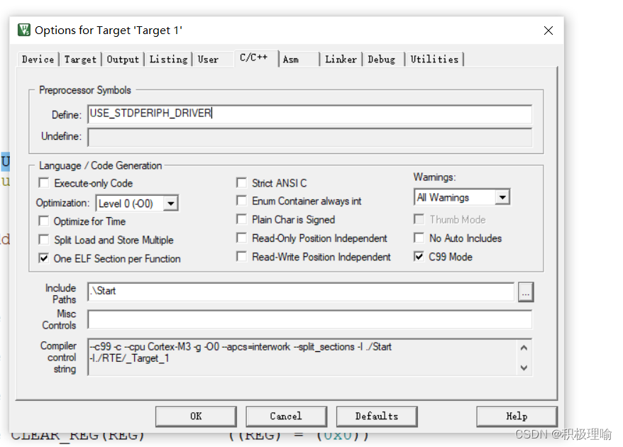 点击魔术棒,点C/C++,点击Include Paths,选择Start文件。