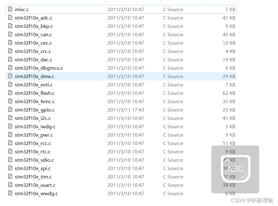 打开固件库的文件夹,打卡STM32F10x,Library,CMSIS,CM3,DeviceSupport,ST,STM32F10x,startup,arm(包含STM32的启动文件)
