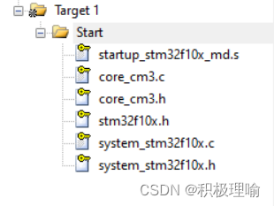 打开keil软件,把Source Group1重命名为Start,并把Start文件中的下面文件都添加进来。