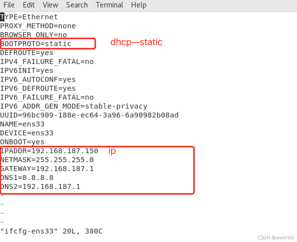 vim ifcfg-ens33