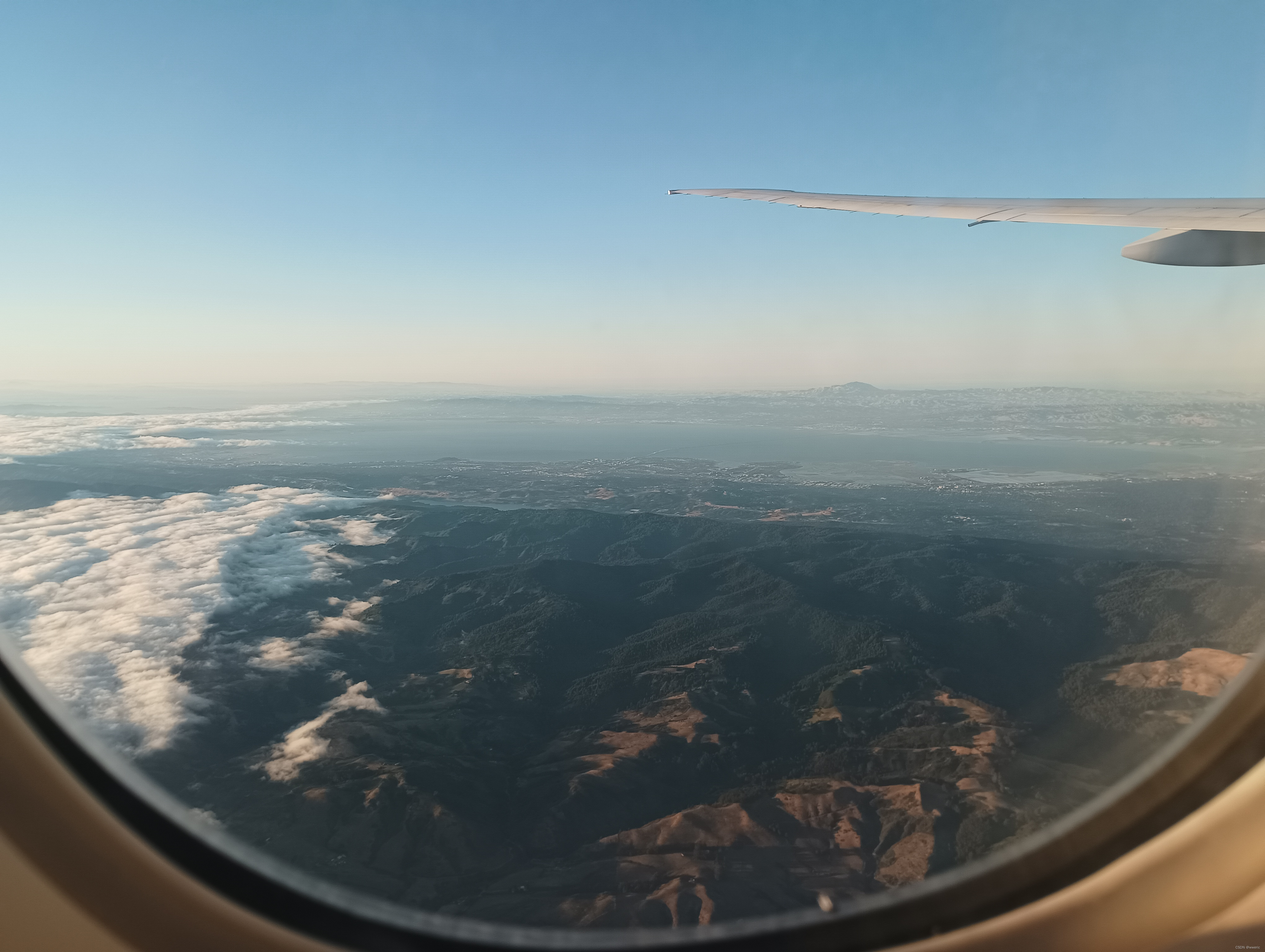 晚上11点多准时上机之后,惊讶于竟然777-300全机满座,差不多有300个人,可见疫情之后中美航线的人流之大,也让台湾航空公司在这一波中赚了不少,关键机票又特别贵。长荣的餐食还是不错的,机上娱乐系统也不错,机上的服务也可圈可点,又有小礼物送给小朋友,体验还是不错的。在旧金山当地时间差不多傍晚6点左右降落旧金山国际机场,让我这个第一个踏足美丽国的人小兴奋了一把。过关比想象中简单快解,海关人员也很Nice, 基本上没怎么问题,就欢迎我们来美国。出了机场,马上叫了去酒店的uber,是个黑人小哥,一开始有些谨慎,后来路上聊了会儿,人也不错,还提醒我们不要去某些街道就可以。路上还看到无人驾驶的taxi,SA的科技感马上迎面而来,到市区的时候刚刚夜幕降临,由于SA的市区是建在高低起伏的山上,从车子上看出去,半山腰的房子的灯管星星点点,很迷人。很快到了酒店也照例给了小哥5美元消费,从机场到酒店打uber花了46美元,关键安全顺利达到,价格也算合理。第一天由于入夜,到了酒店洗洗就睡了。