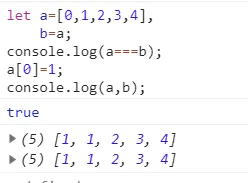 而当我们a[0]=1时进行数组修改时,由于a与b指向的是同一个地址,所以自然b也受了影响,这就是所谓的浅拷贝了。