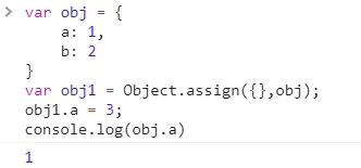 var obj1 = Object.assign({}, obj); // obj赋值给一个空{}