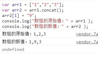 console.log("数组的原始值:" + arr1 );