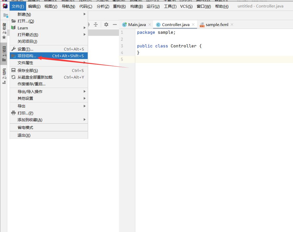 import javafx.application.Application错误的话,就需要配置Javafx了 - 汉化处理点击创建一个项目 左上角找到