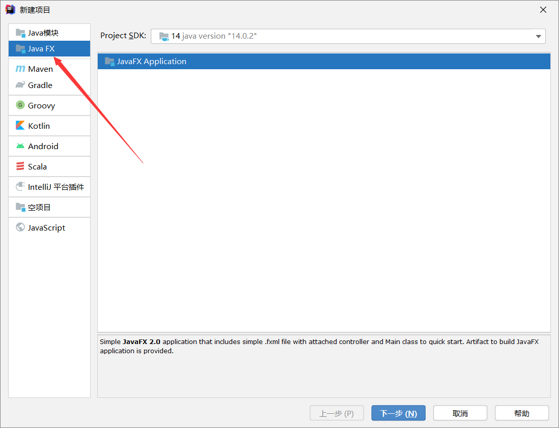 new project,安装好之后可以对idea进行【汉化处理】 - 新建一个javafx项目,