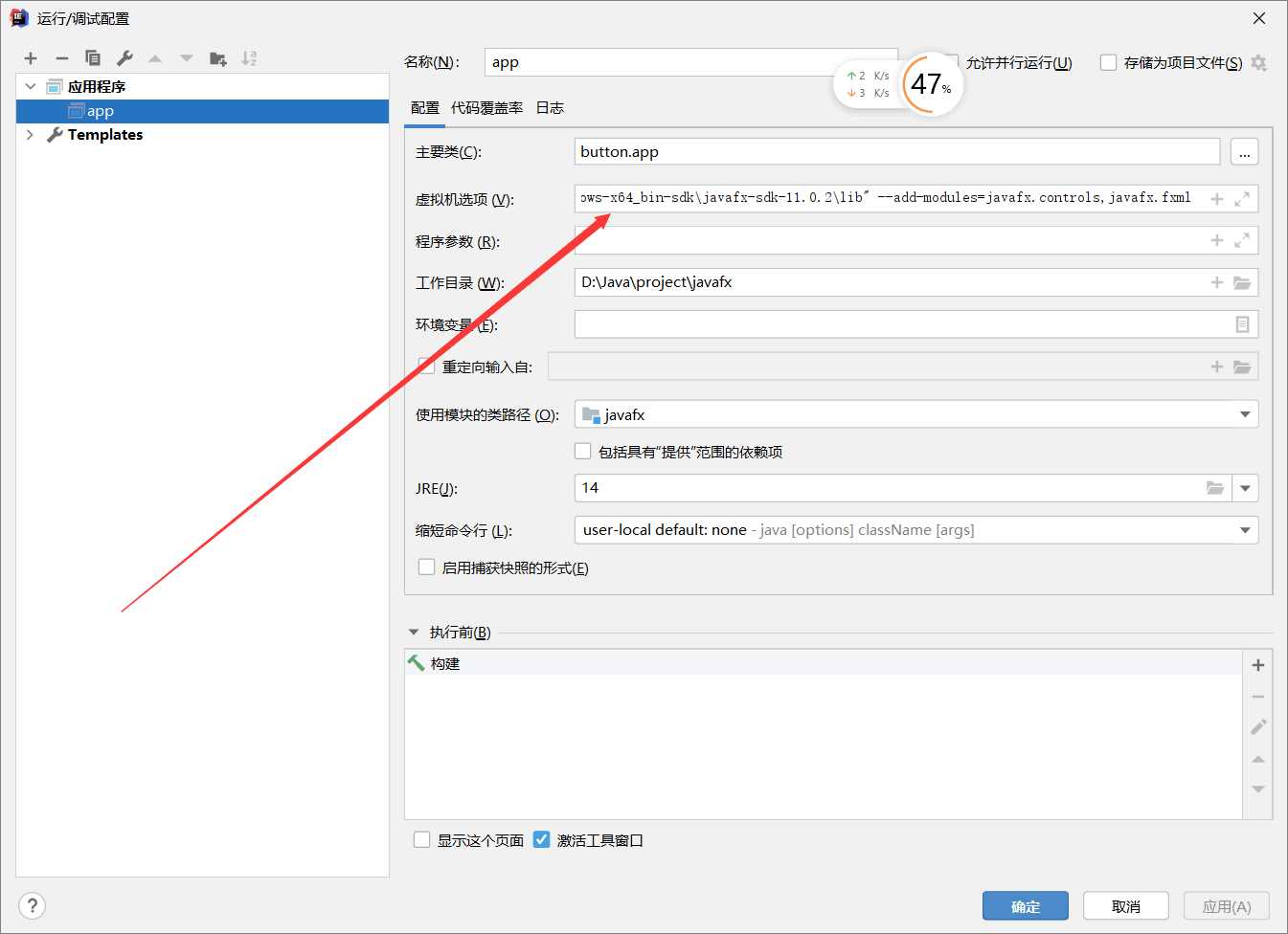 vm 选项,注意module-path中的地址为下载sdk中lib的位置,绝对位置