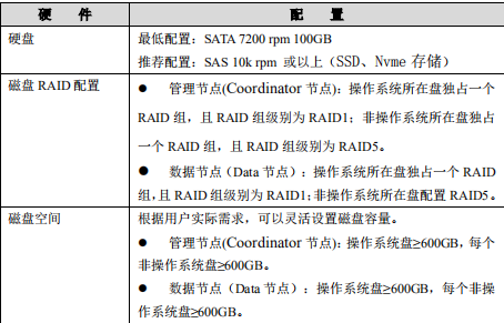 GBase 8a MPP Cluster 推荐将主机的本地操作系统磁盘设置为 RAID1,数据磁盘设置为 RAID5。RAID5 工作模式至少需要 3 块完全相同的物理磁盘。