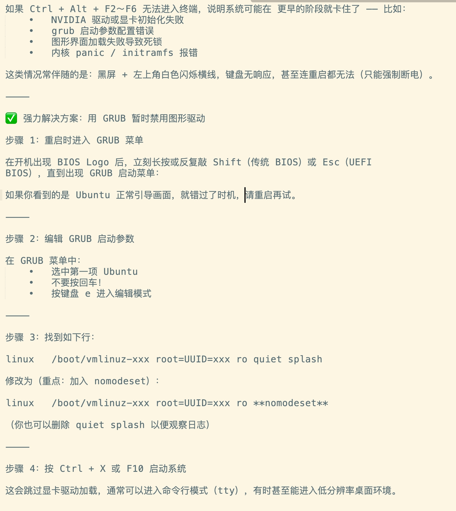 2、重装过程中或者重装完成第一次启动如果开机黑屏,一般是独立显卡驱动没加载起来,可以使用下面的方式,跳过显卡驱动,等安装完上述所有驱动后就可以正常使用