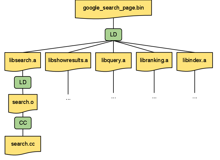 As you have learned in the previous post, at Google every product is constantly building from head. In this article we will go into a little more detail in how we tell the build system about the source code and its dependencies. In a later article we will explain how we take advantage of having this exact knowledge to distribute the builds at Google across a large cluster of machines and share build results between developers.