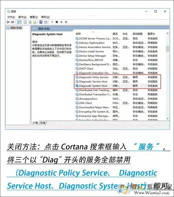 禁用Connected User Experiences and Telemetry服务和以下3个服务