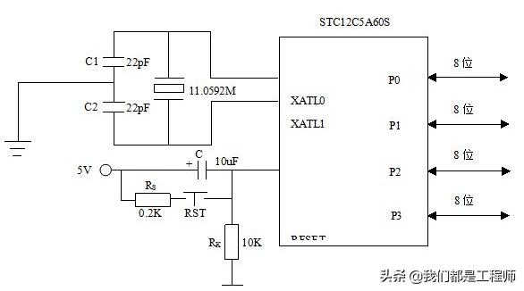 实际上,这也不是硬件工程师的黑话,而是事实使然。因为一个独立的单片机芯片即使你给它通上电,它也不一定工作,为啥?因为它缺东西,缺啥?缺得多了,如果它没有内部晶振的话,它可能需要一个外部晶振;它可能还需要一个电源电路,因为一般的单片机的工作电压基本上都是5伏或者3.3伏,别问为什么,就是这么规定的,这个电压需要稳定,可不能摇摇摆摆,弄不好就把单片机给烧了。尤其是一些刚接触硬件的兄弟,稀里糊涂地就拿220伏交流电往上接,弄不好会出人命的。还有一个就是得要一个程序下载电路吧,还需要一个复位电路吧,这个单片机和软件程序一样,有时也需要重新启动一下,所以就弄个复位电路。