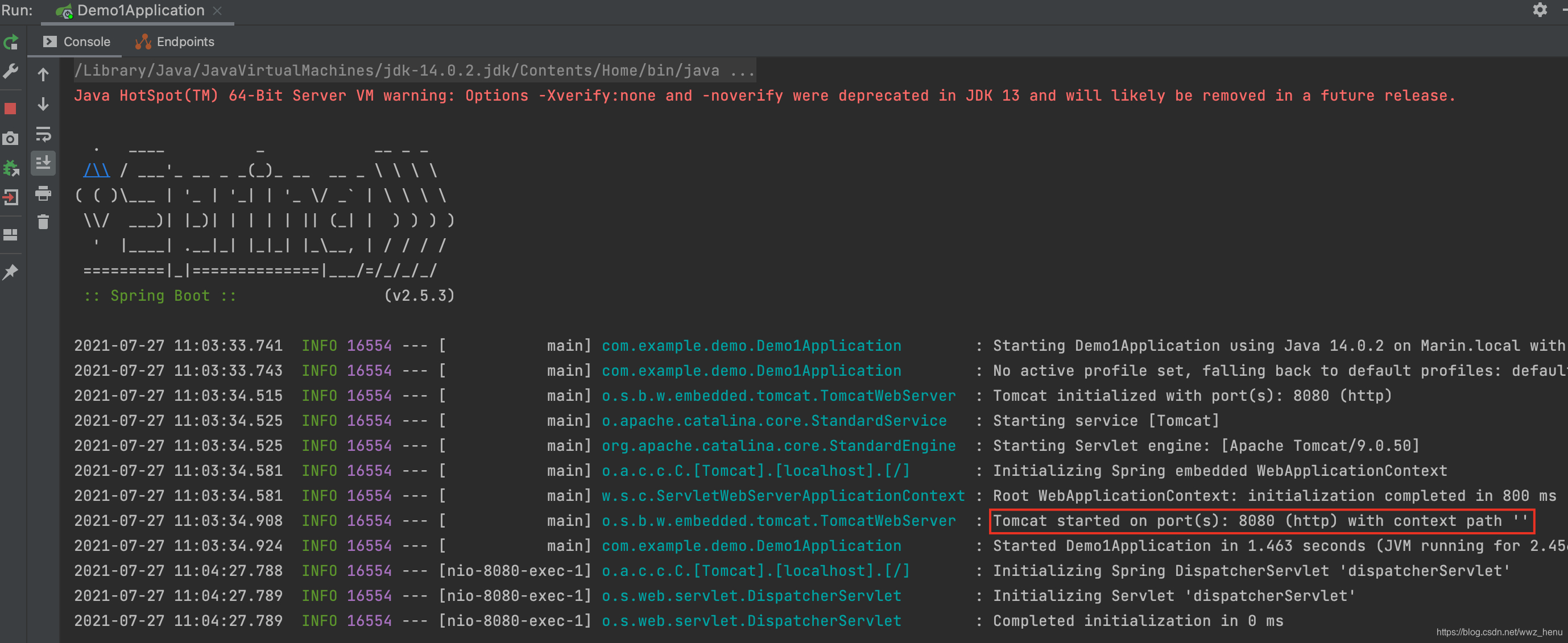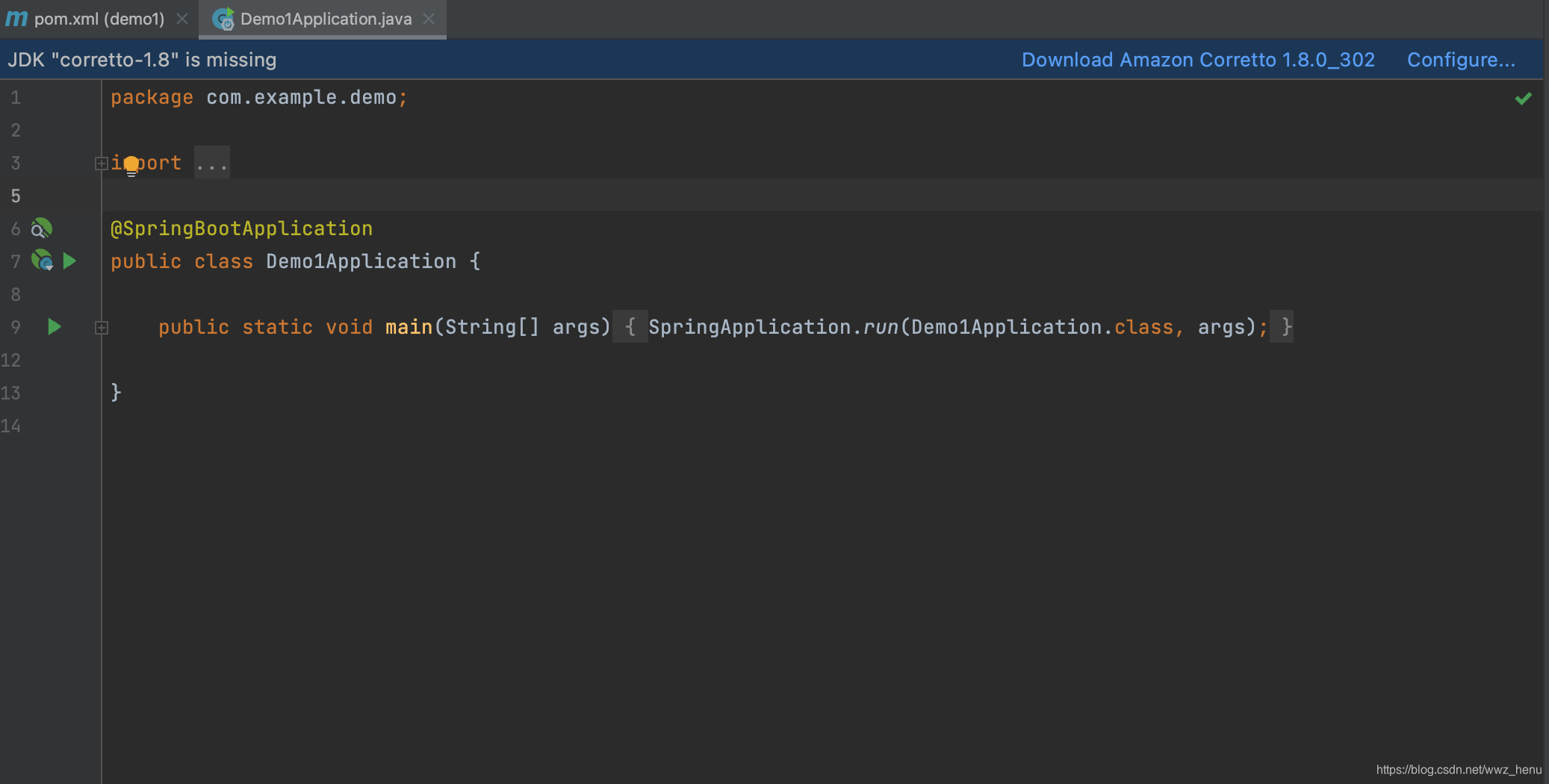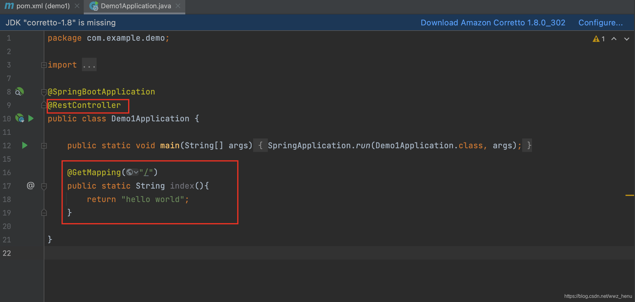 编辑Demo1Application.java文件