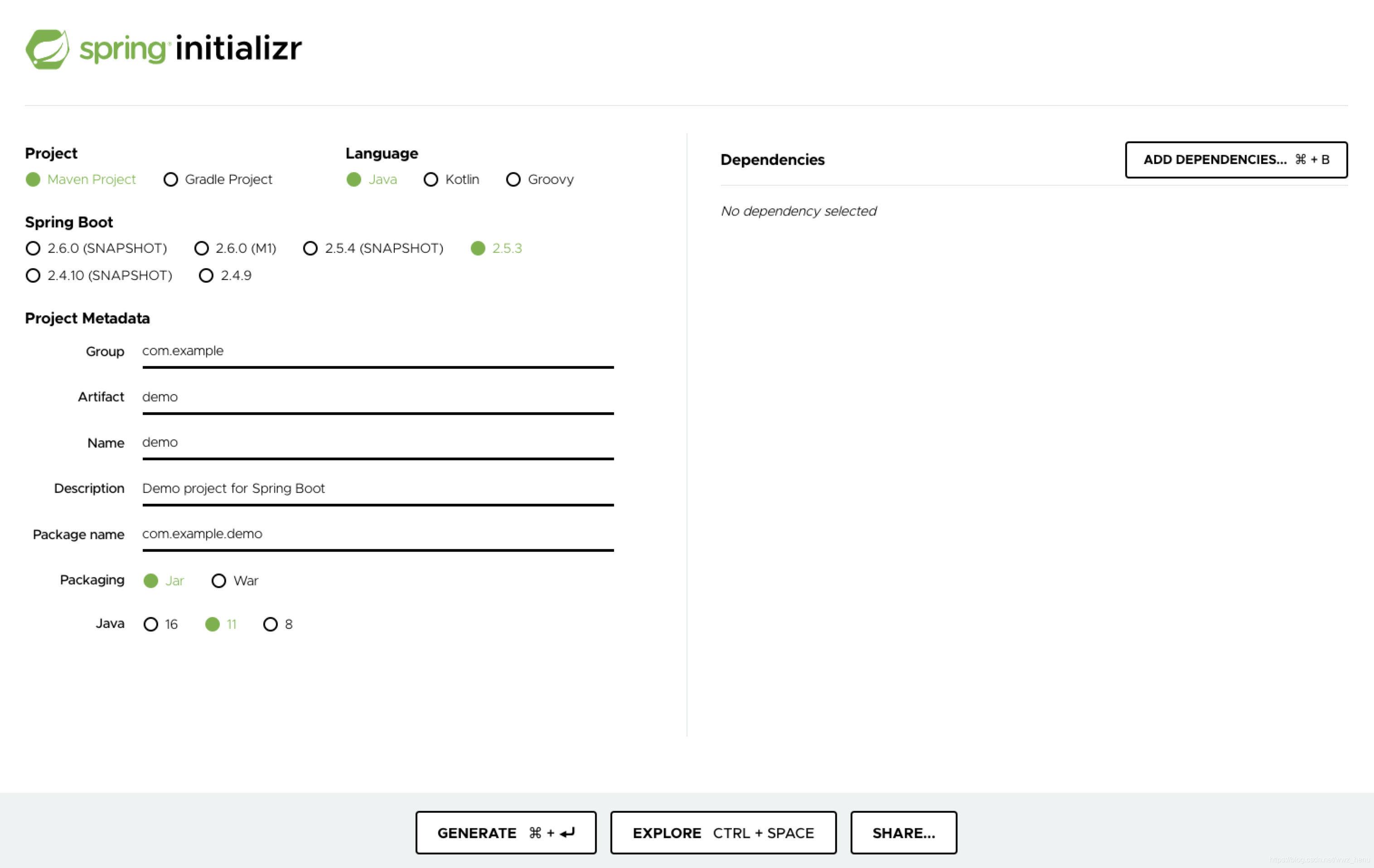 1.使用 Spring Initializr